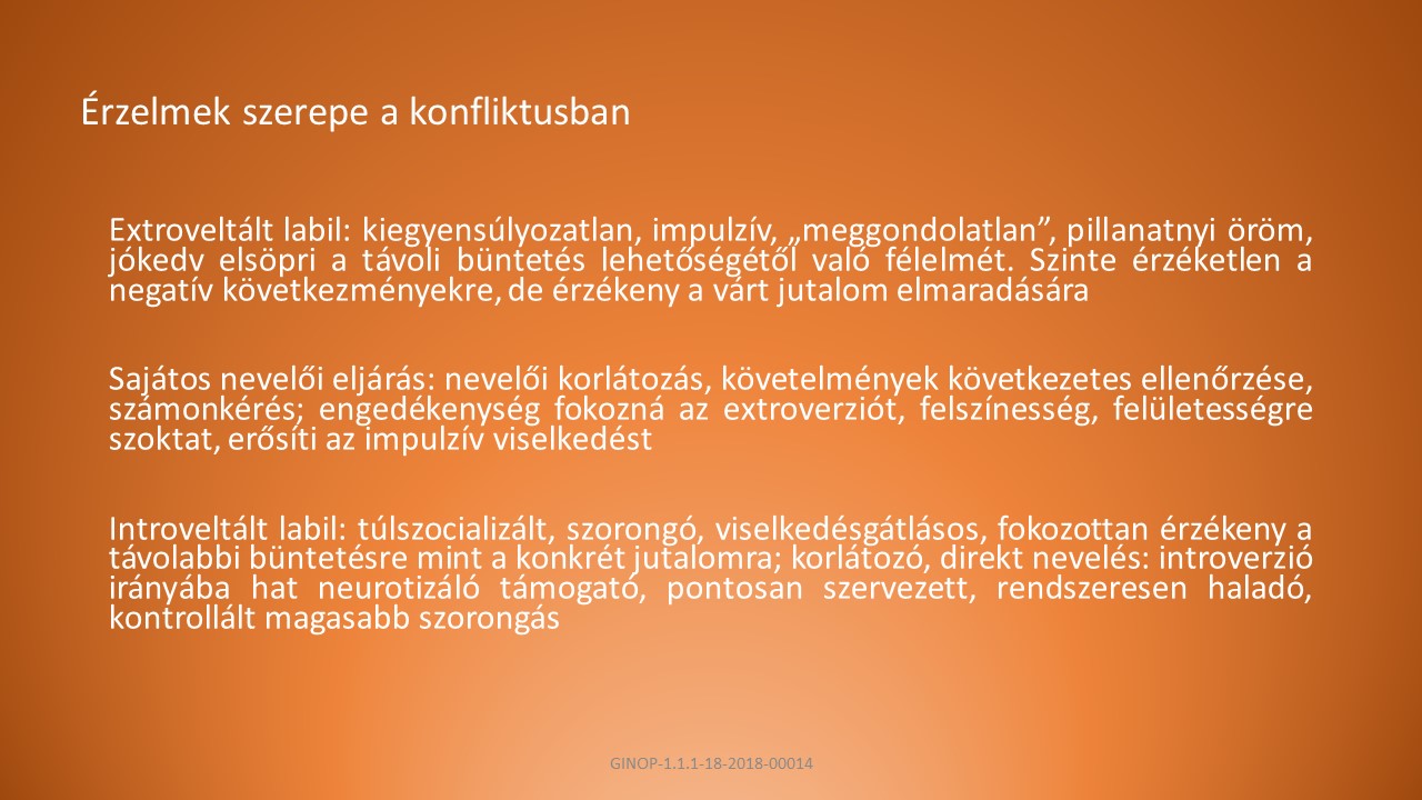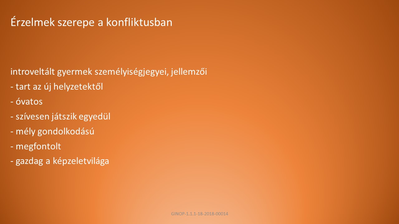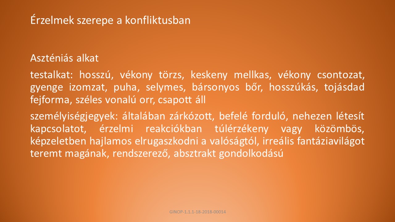 A, Nehézkesebben alkalmazkodnak, szociális környezetben nehezebben teremt kapcsolatot, háttérben marad, elmélyült, könnyen sajátít el absztrakt fogalmakat, nehezen váltanak egyik tárgyról másikra, hűségesebbek, szociális értékrendjüket nehezen építik át; iskoláskor előtt kialakul.