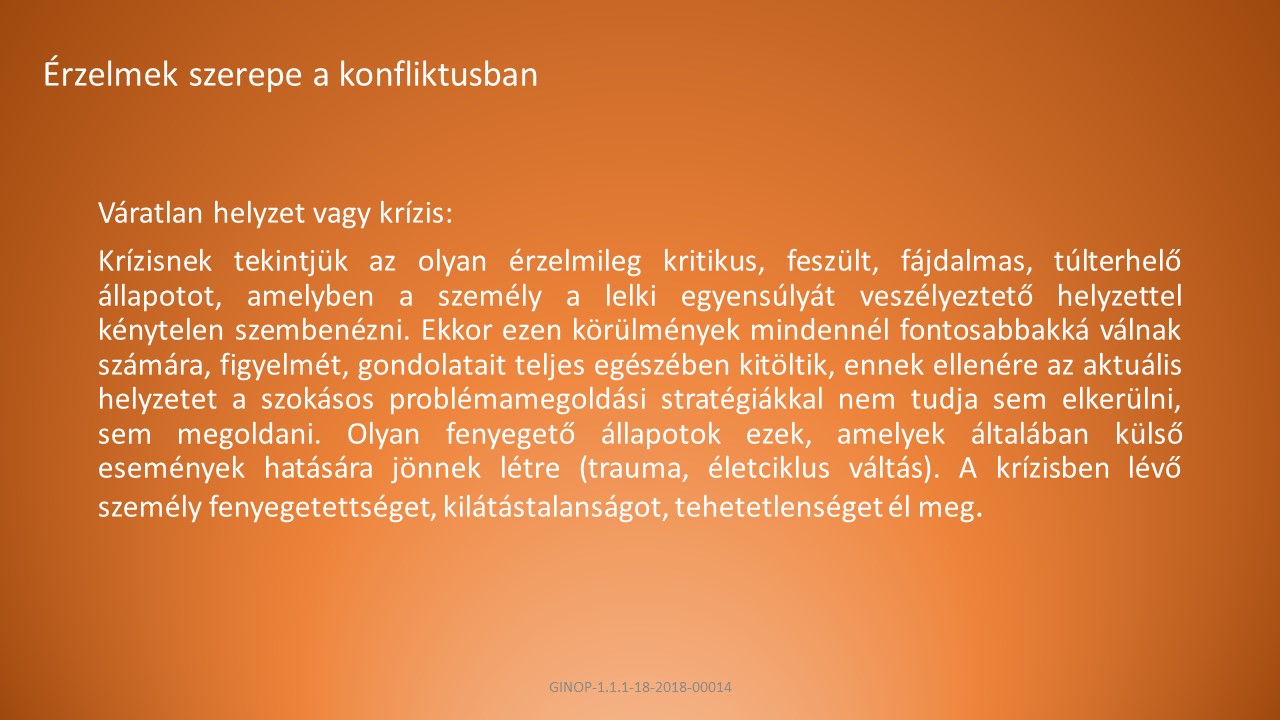 A, Az olyan érzelmileg kritikus, feszült, fájdalmas, túlterhelő állapotot, amelyben a személy a lelki egyensúlyát veszélyeztető helyzettel kénytelen szembenézni.