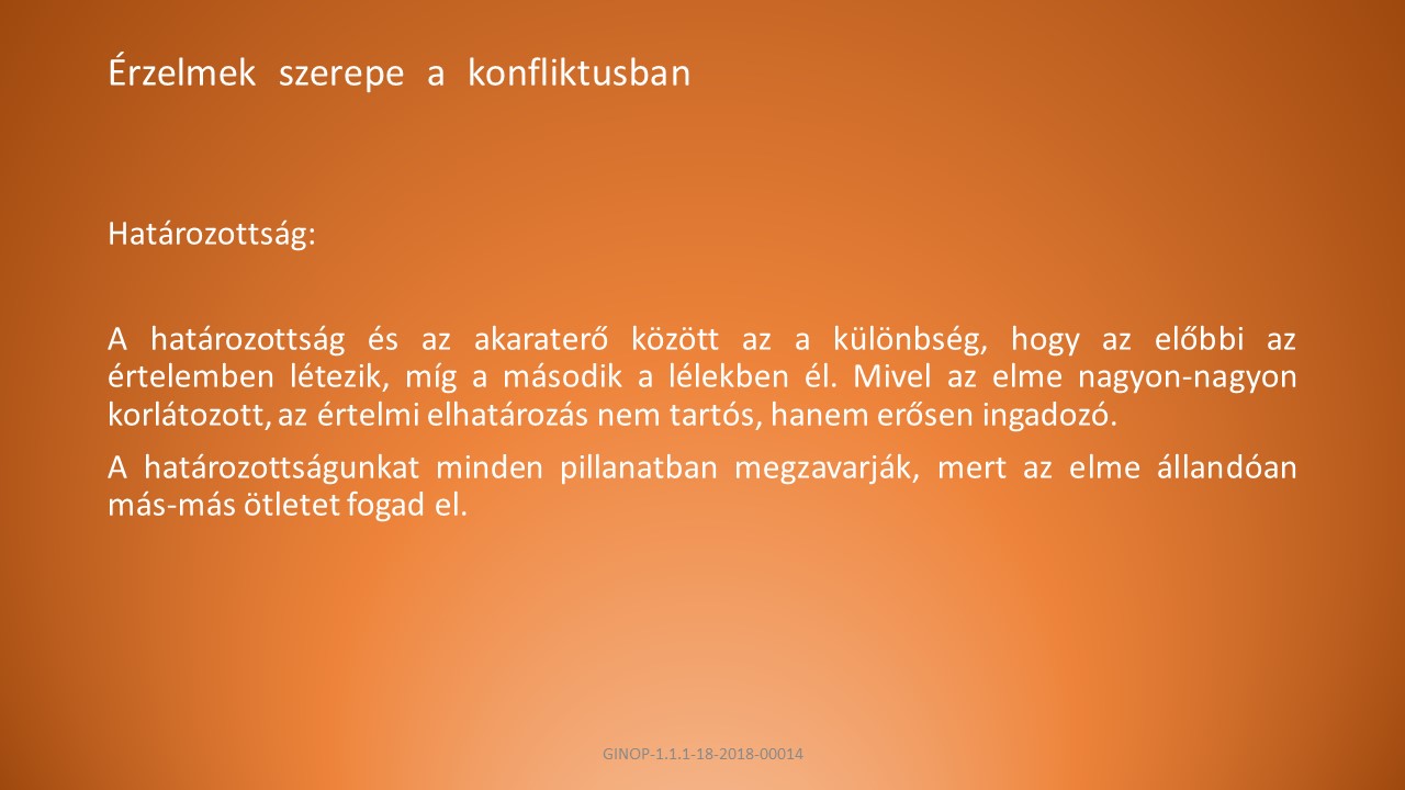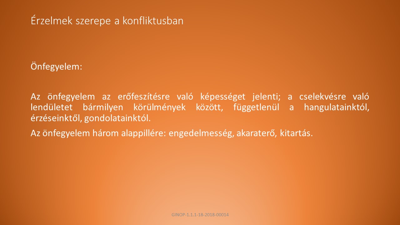 B, Azt a képességet jelenti mely a cselekvésre lendületre bármilyen körülmények között, függetlenül a hangulatainktól, érzéseinktől, gondolatainktól. Engedelmesség, akaraterő, kitartás.