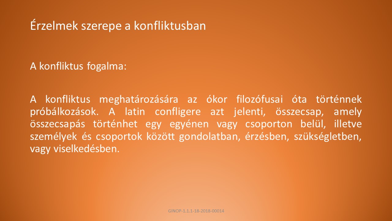 B, A konfliktus meghatározására az ókor filozófusai óta történnek próbálkozások. A latin confligere azt jelenti, összecsap, amely összecsapás történhet egy egyénen vagy csoporton belül, illetve személyek és csoportok között gondolatban, érzésben, szükségletben, vagy viselkedésben.