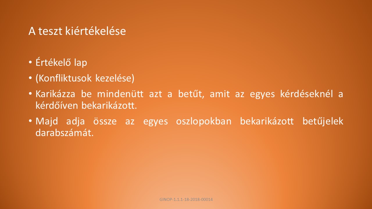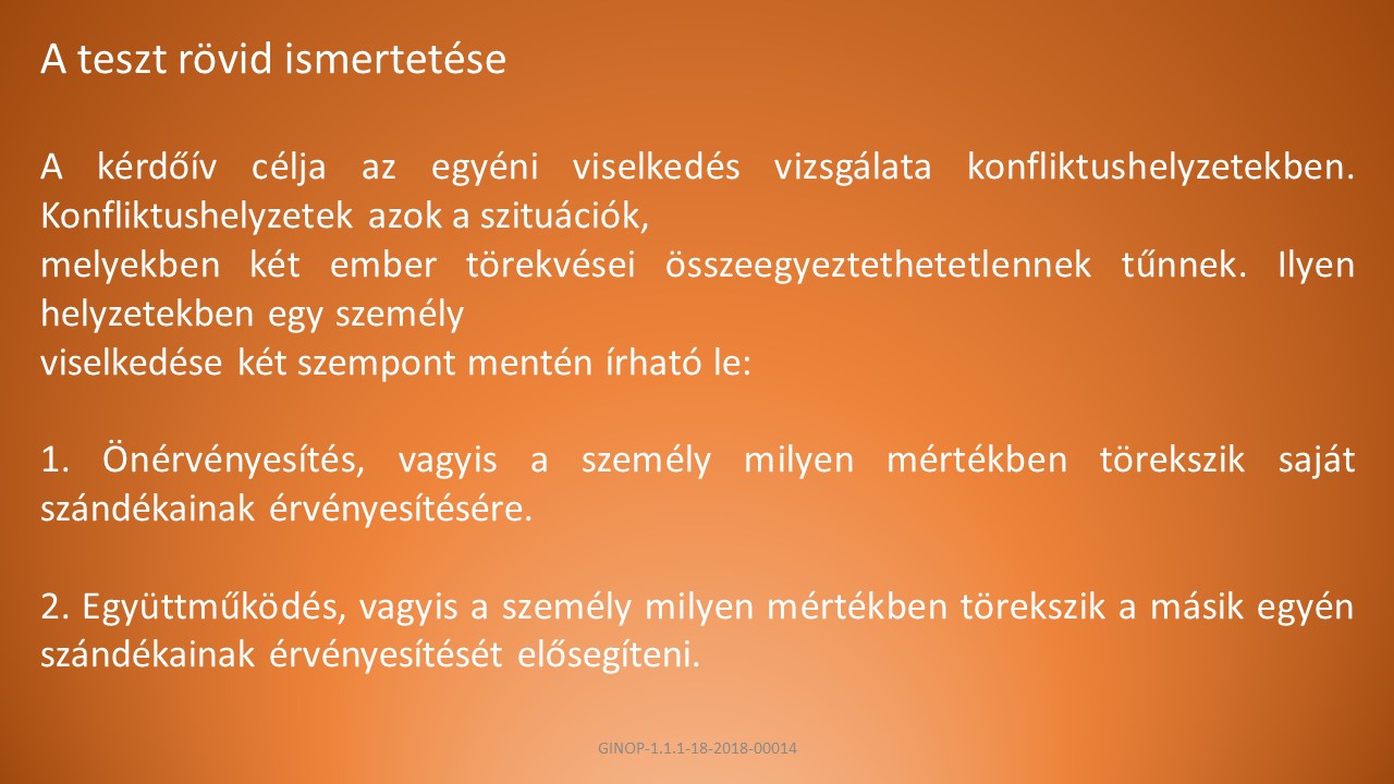 A, A kérdőív segítségével megtudhatjuk, hogyan viselkedünk olyan helyzetekben, amikor saját szándékunk eltér mások szándékától.