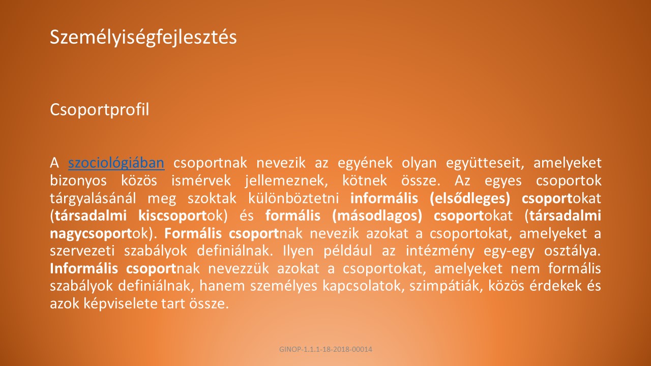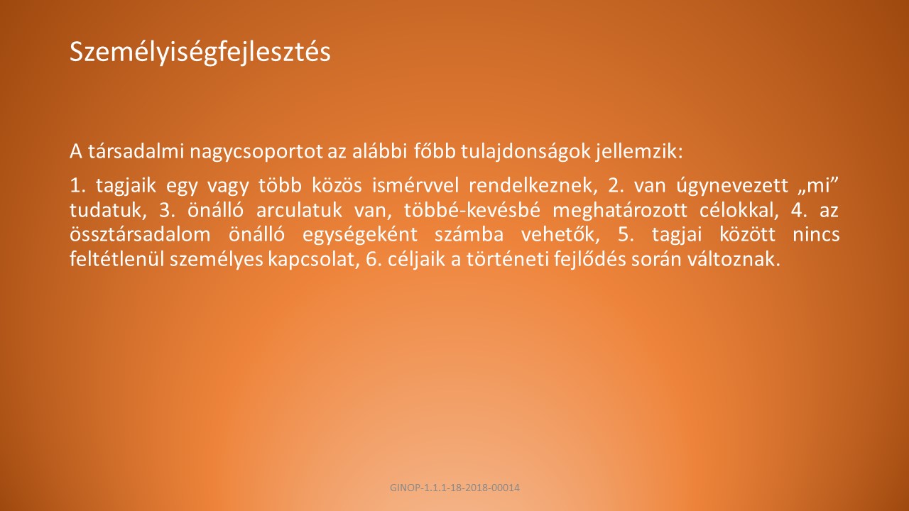 B, Az emberek kategorizálása pszichológiai szempontból.