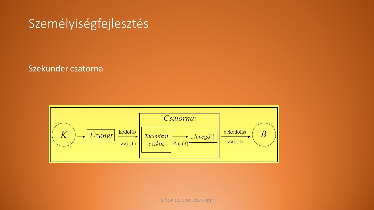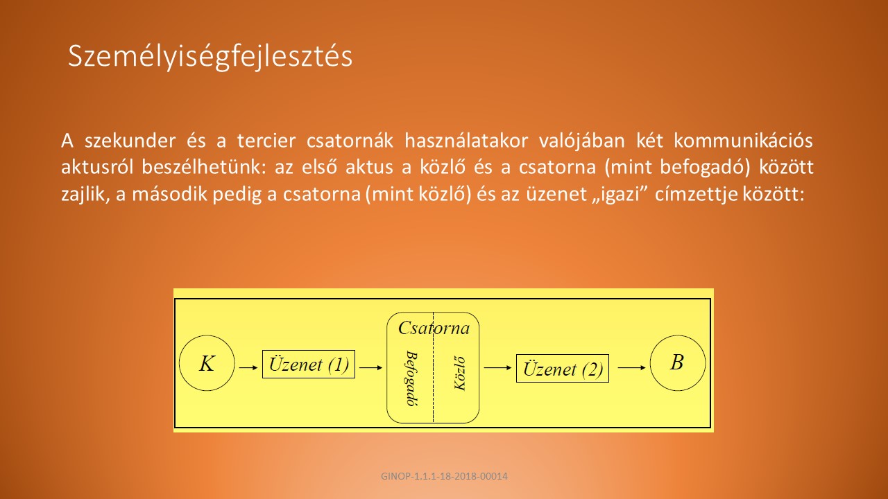 B, A primer csatornánál bonyolultabb kommunikációs csatorna: a közlőnek vagy a befogadónak valamilyen technikai eszközre van szüksége ahhoz, hogy a kommunikációs interakció létrejöjjön.