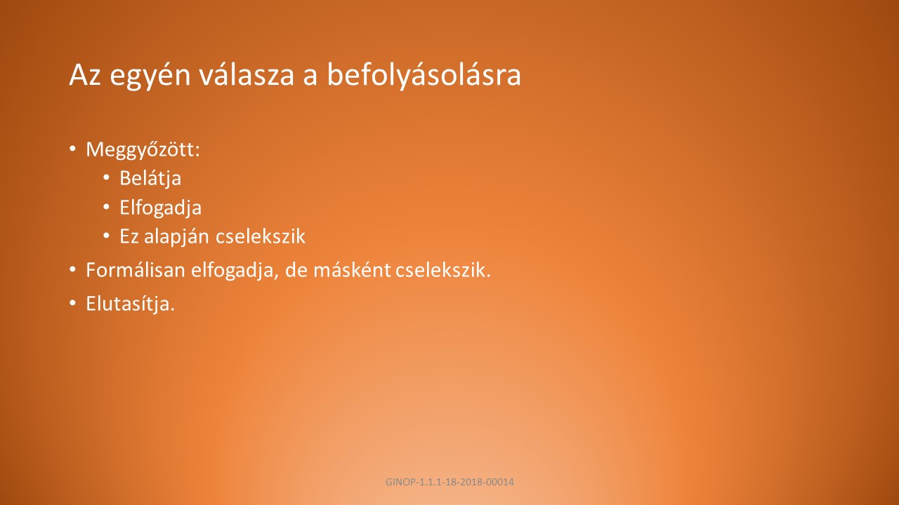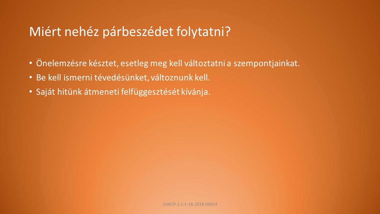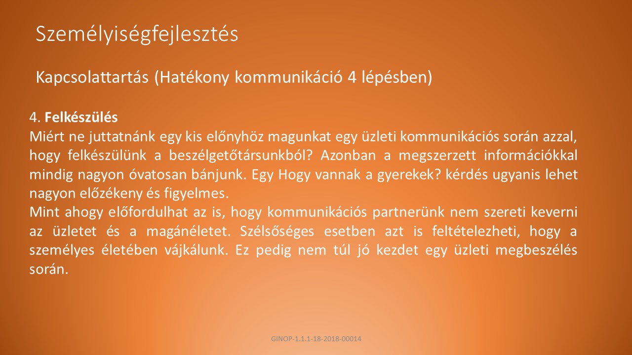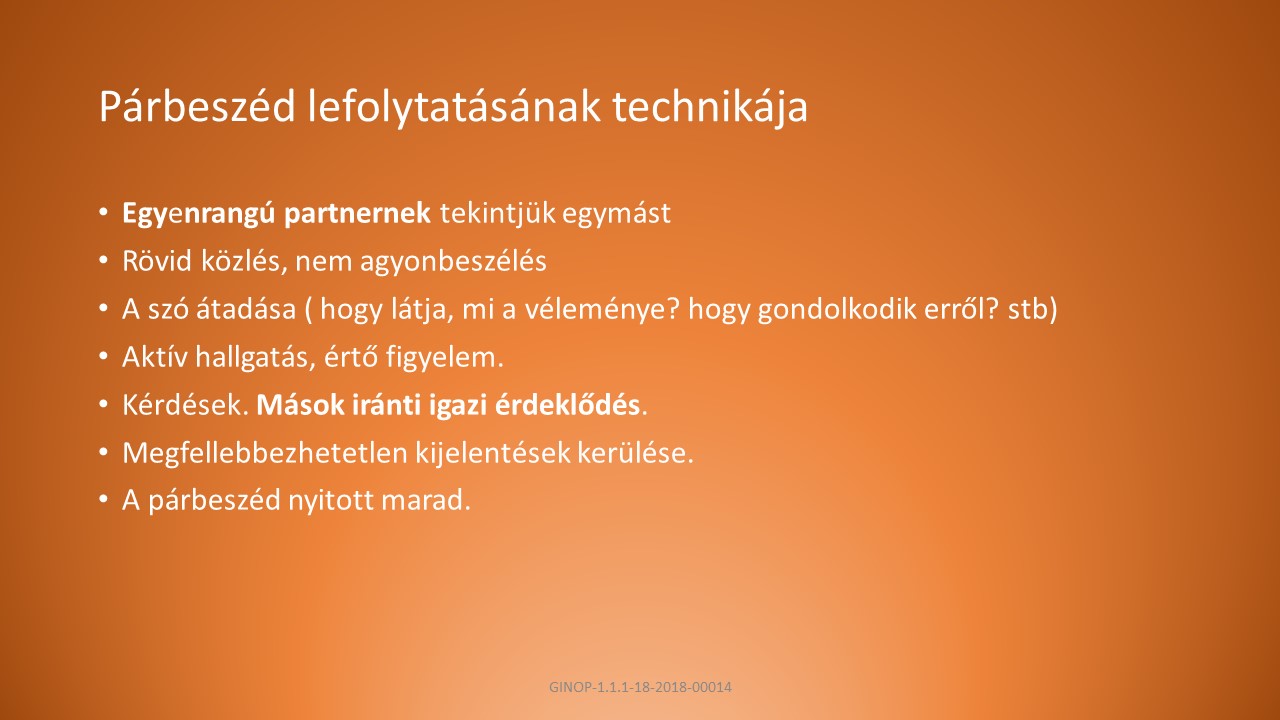 B, Alkalmazkodjunk a helyzethez és a személyhez, hozzáállasunk módja tükrözze a szándékunkat.