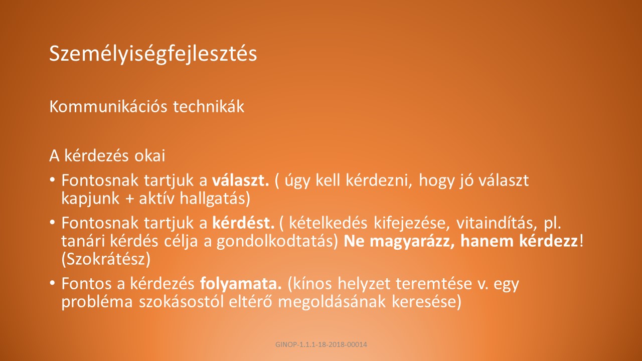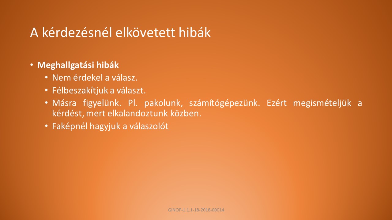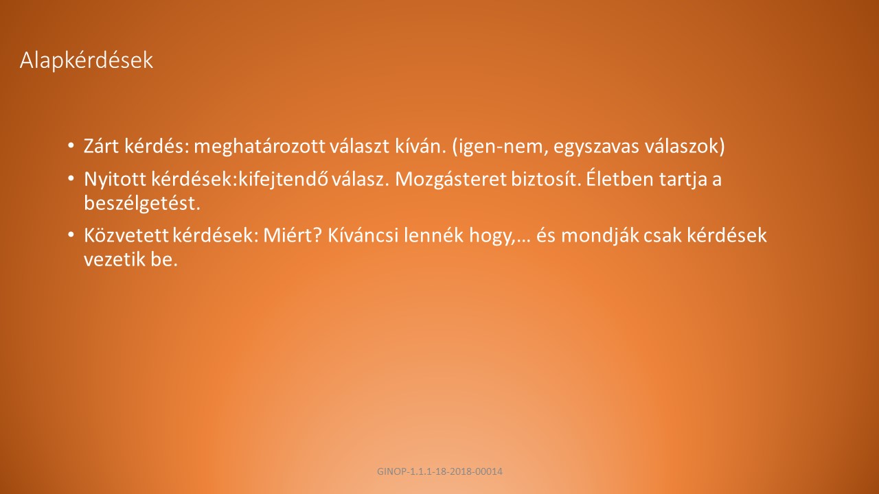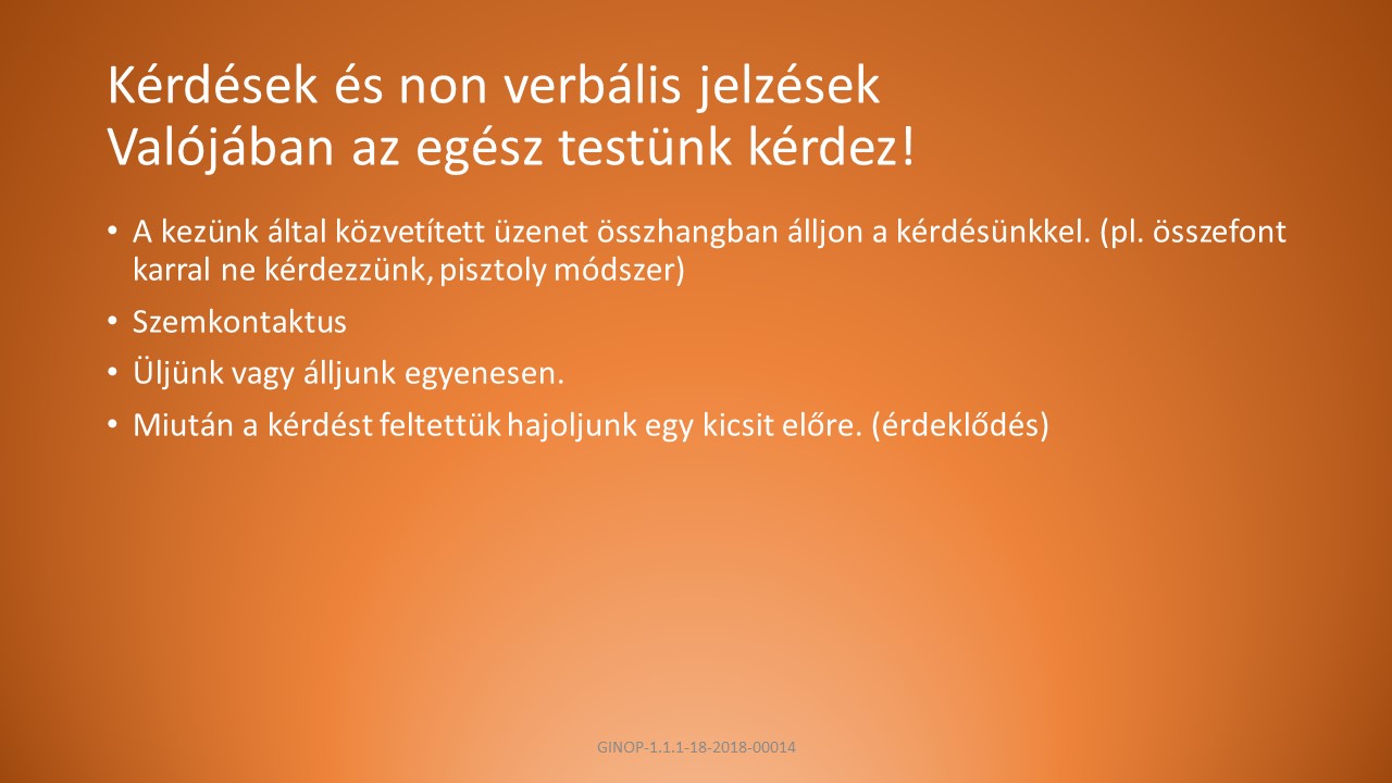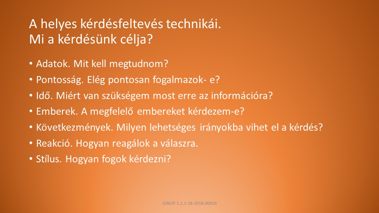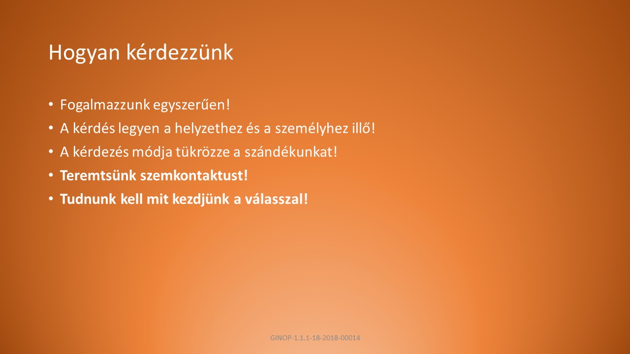B, Fogalmazzunk egyszerűen, a kérdés legyen a helyzethez és a személyhez illő, kérdezés módja tükrözze a szándékunkat.