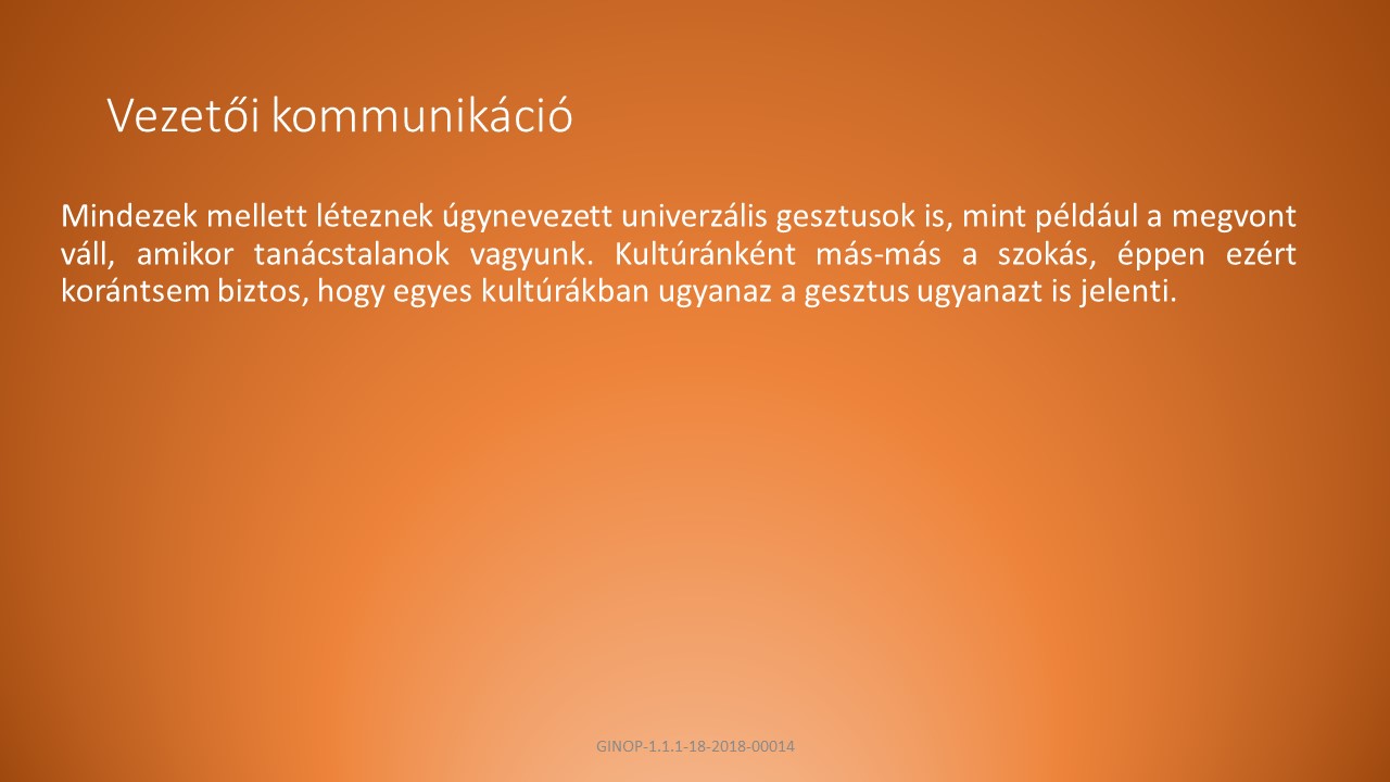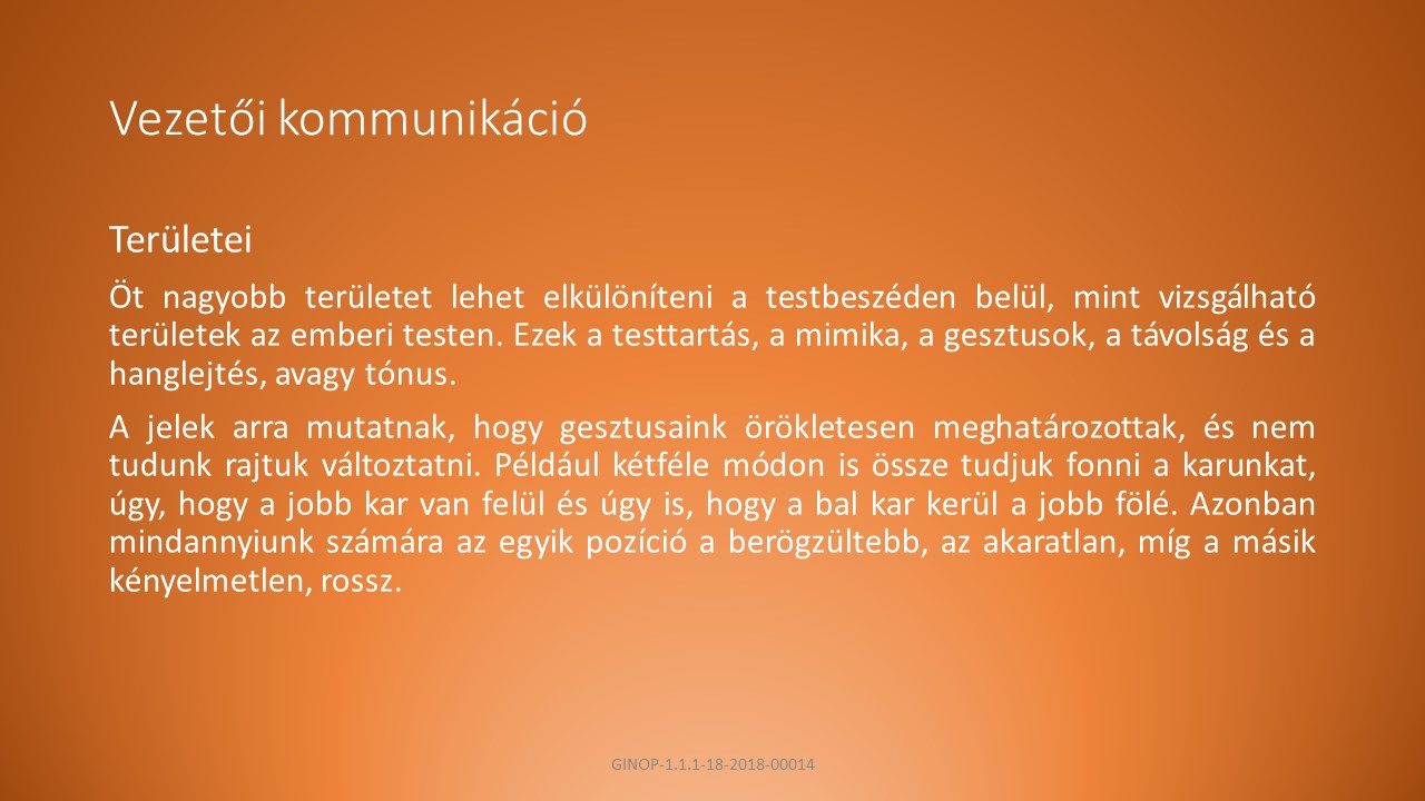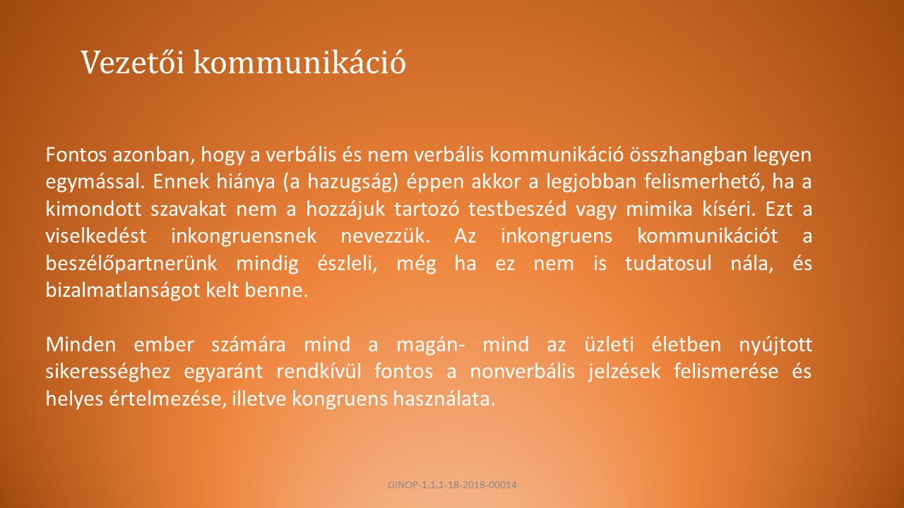 B, Valójában nem csak az a lényeg, hogy mit mondunk, hanem az is nagyon fontos, hogy hogyan. Ezért a hatásos kommunikációhoz szervesen hozzátartozik, hogy testünk és arcunk rezdüléseit ellenőrizni és irányítani tudjuk, és képesek vagyunk felismerni partnerünk non-verbális jelzéseit.