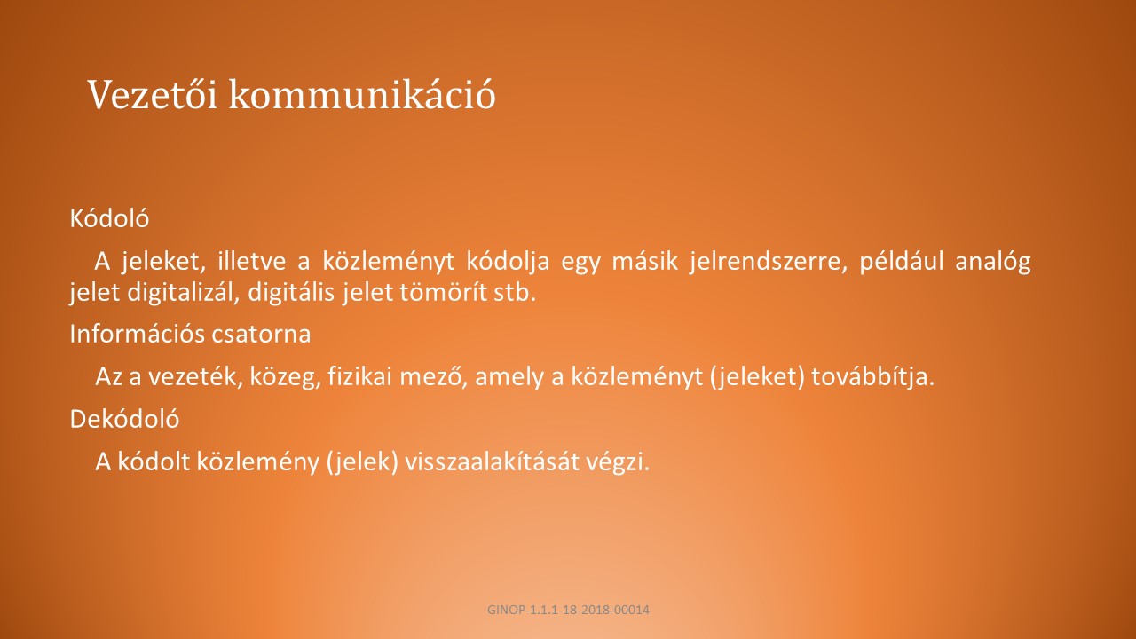 A, A jeleket, illetve a közleményt kódolja egy másik jelrendszerre, például analóg jelet digitalizál, digitális jelet tömörít stb.
